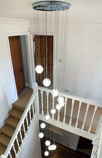 Professional installation of all lighting types including pendant lights, downlights, oyster lights and chandeliers for residential and commercial properties.